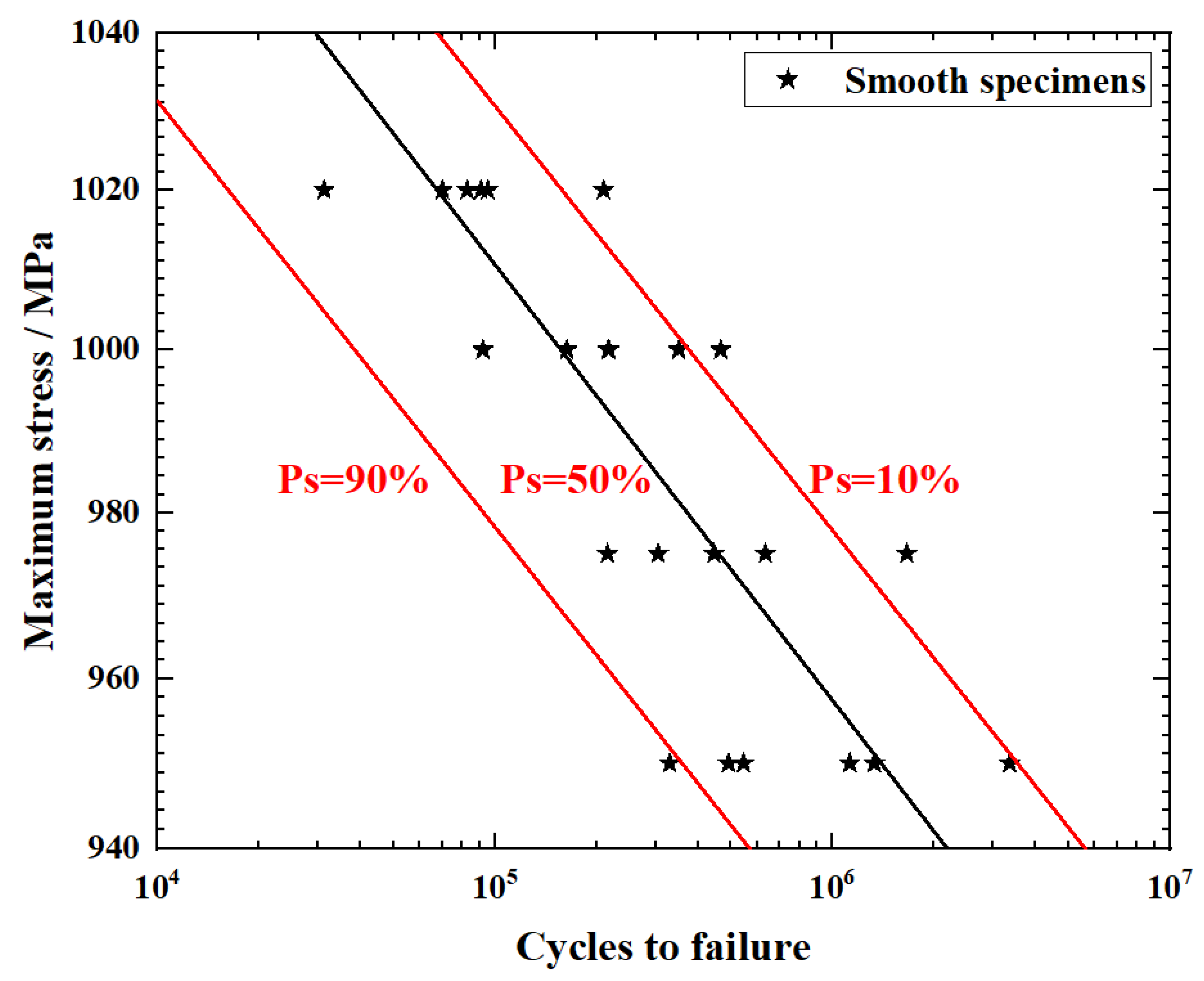- Use the Weibull distribution to describe the dispersion of fatigue life of the smooth specimens, and obtain the Weibull scale parameters and shape parameters ;