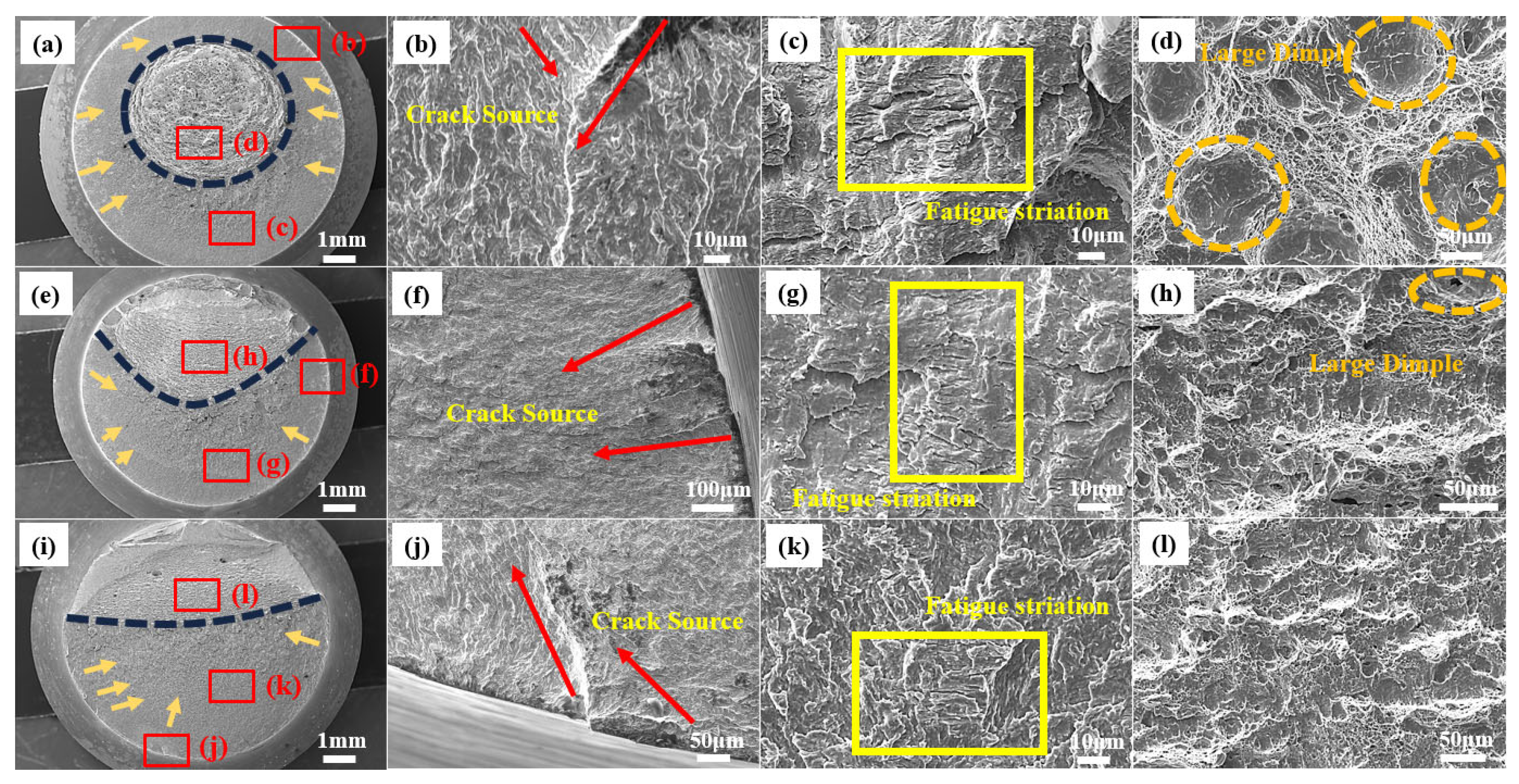 - Liu, S.; Wang, X.; Wang, P.; Chen, H.; Wang, Y.; Liu, Z.; Liu, X. The plastic strain energy density-based fatigue life prediction method incorporating geometric-mechanical-microstructural characteristic parameters of machined surface integrity. Results Eng. 2025, 28, 107299. [Google Scholar] [CrossRef]