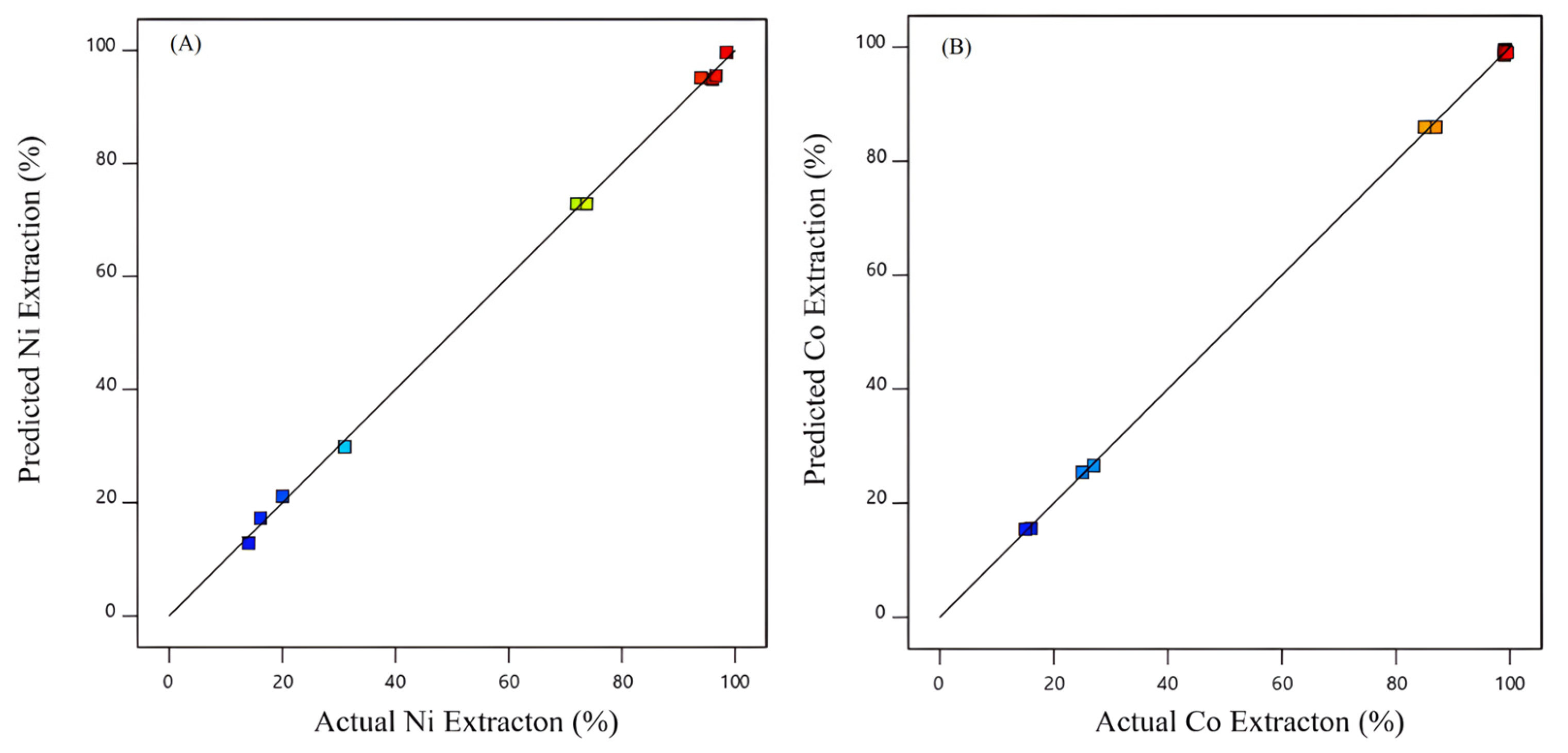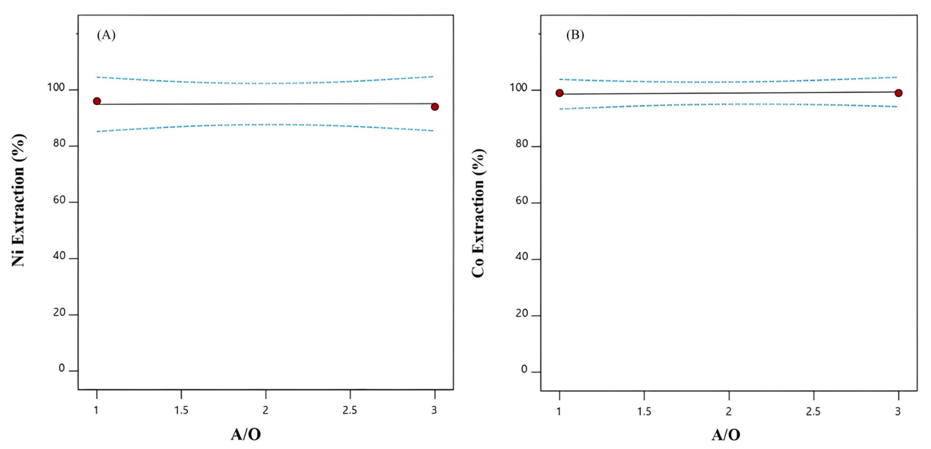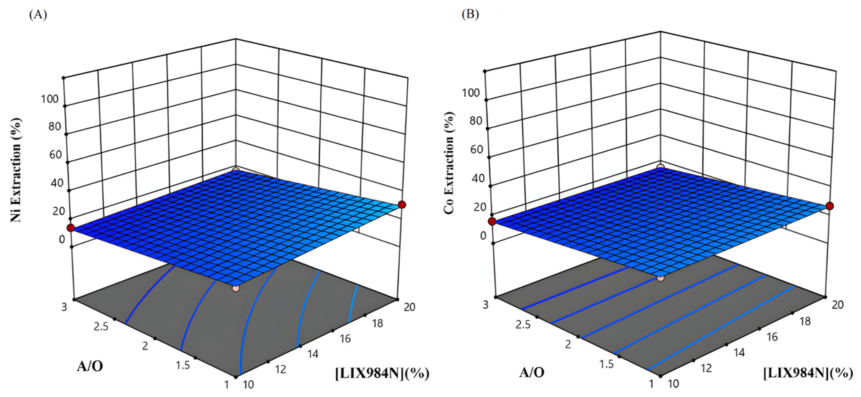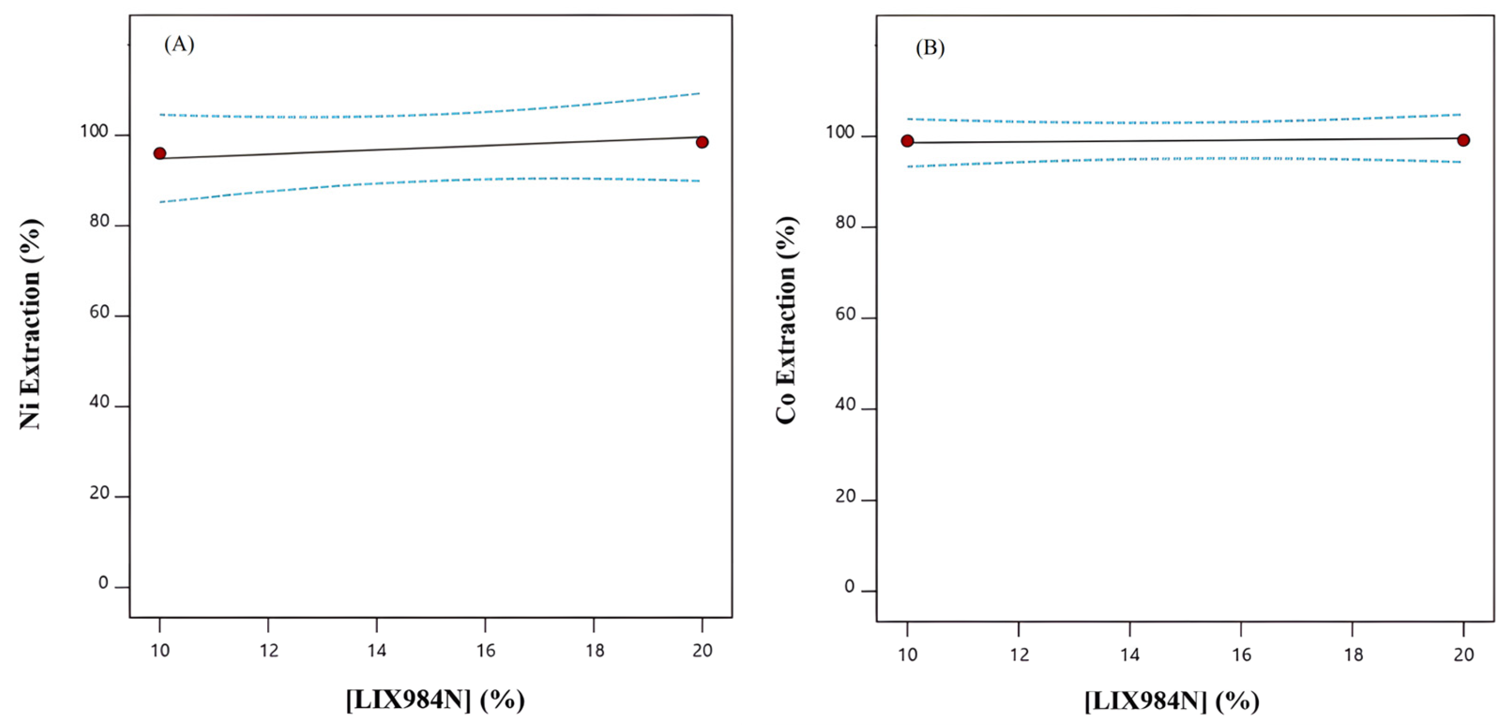 3.3. Synergistic Effect of the Studied Parameters on Nickel and Cobalt Extraction Using LIX984N