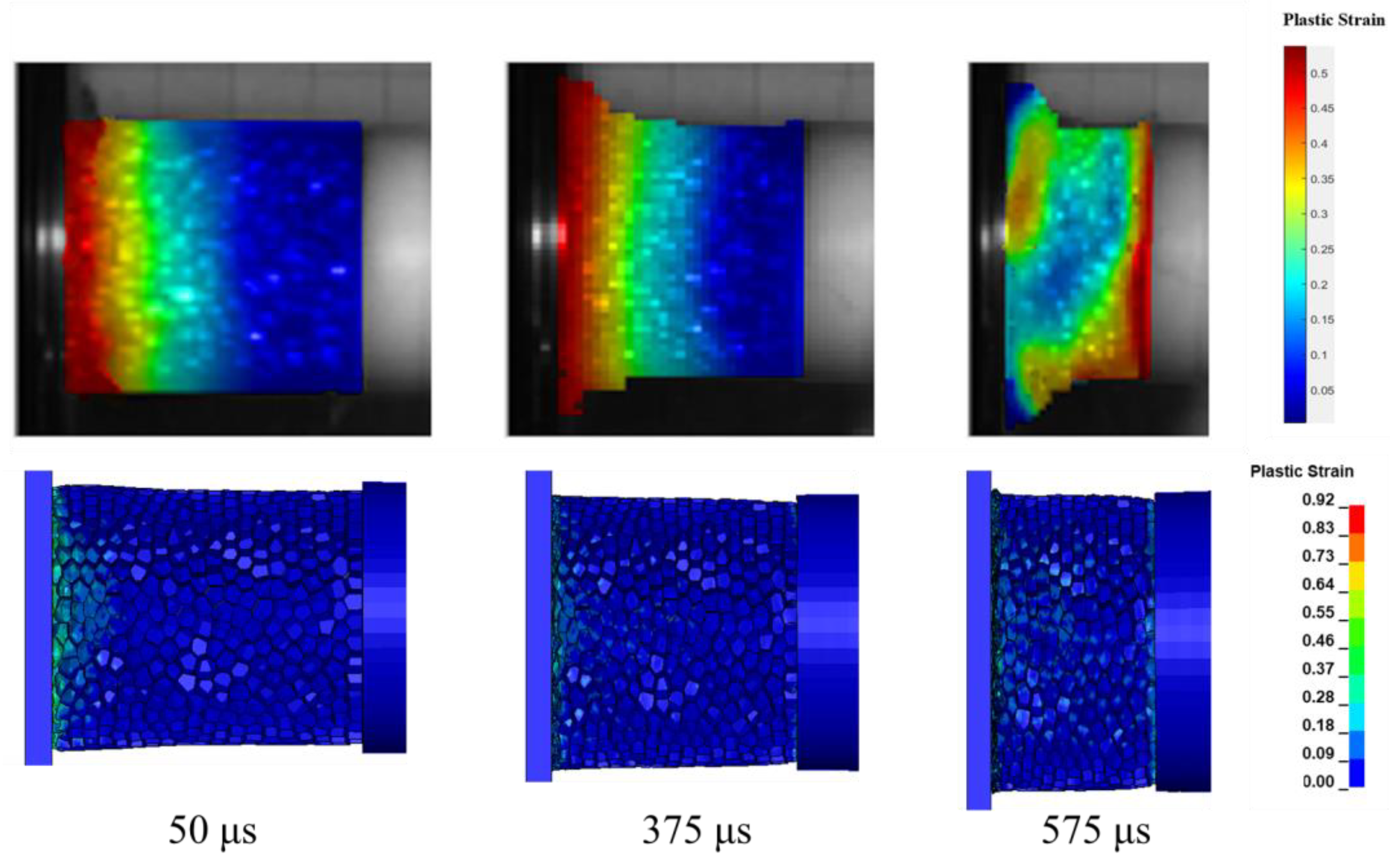 - Wlodarczyk, E.; Sarzynski, M. Experimental analysis of density and compressive strain of porous metal with the use of Taylor test. Arch. Mech. 2014, 66, 245–256. [Google Scholar]