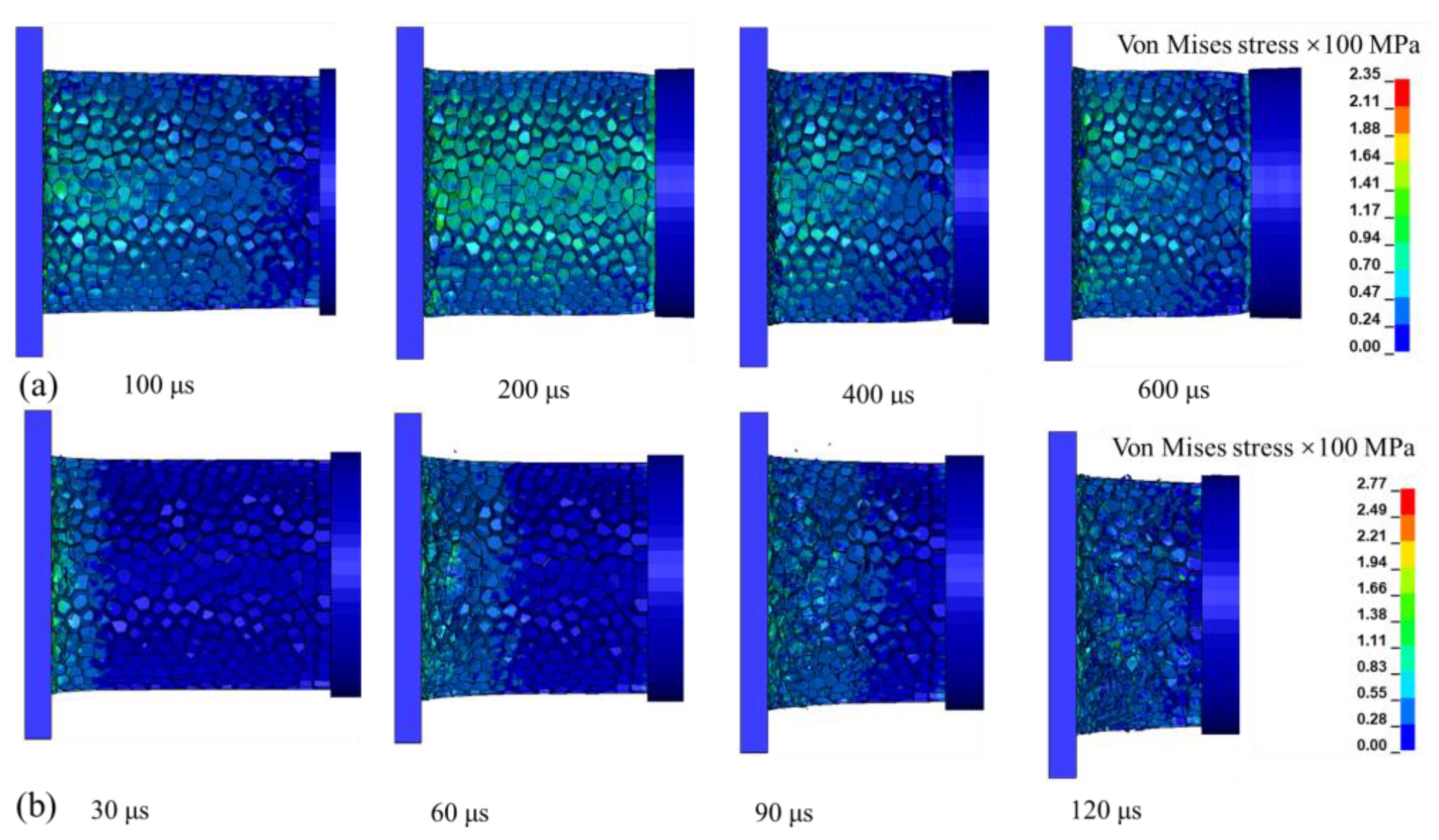 - Wang, B.; Zhang, J.; Lu, G. Taylor impact test for ductile porous materials—Part 2: Experiments. Int. J. Impact Eng. 2003, 28, 499–511. [Google Scholar] [CrossRef]