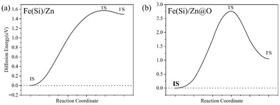 Diffusion Energy Barrier Profiles of Si in Two Interface Structures. (a) Fe(Si)/Zn interface structure; (b) Fe(Si)/Zn@O interface structure.