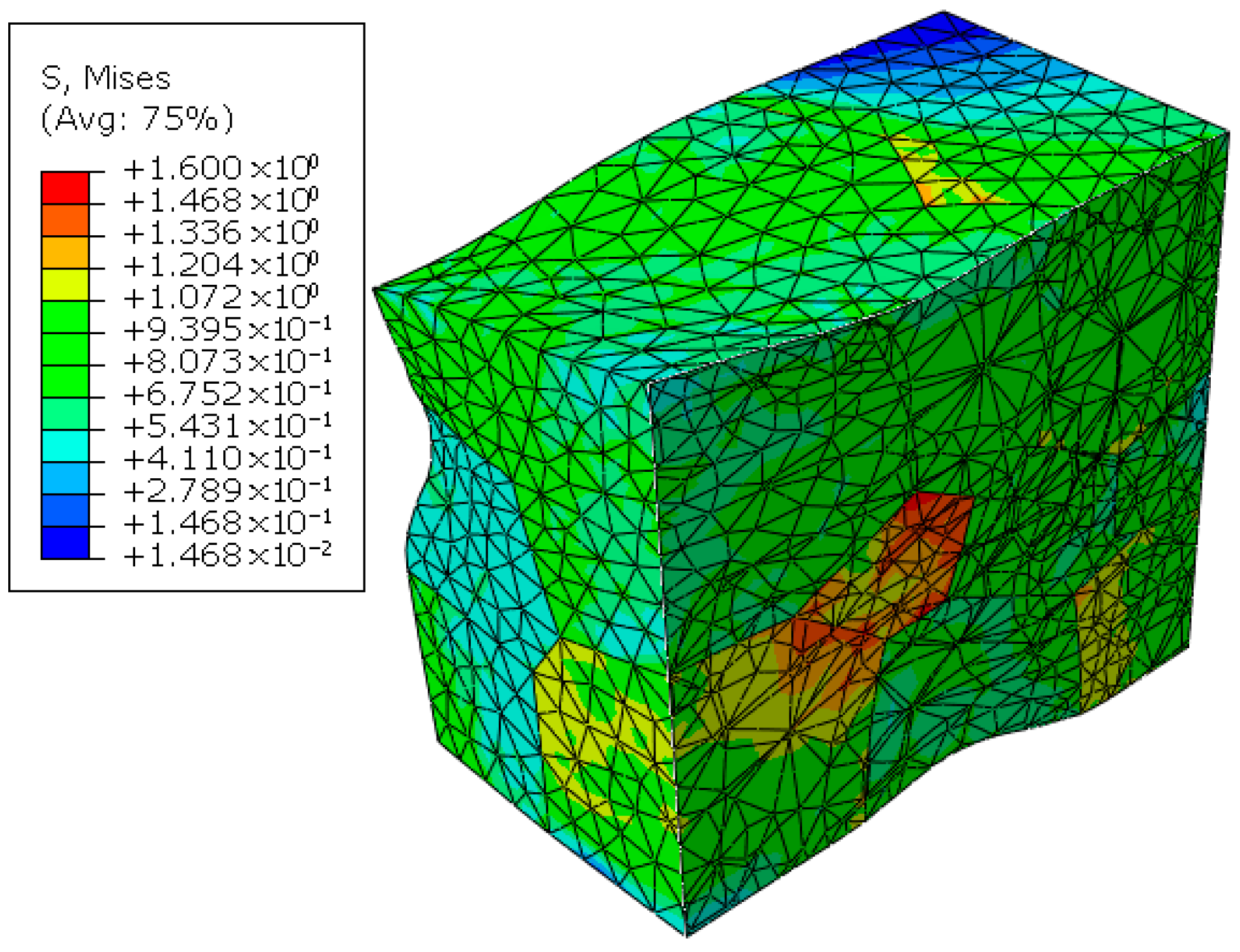 - Element grouping. A custom script parsed Neper output and automatically identified finite elements belonging to each polyhedron. These elements were grouped into sections corresponding to grains and exported for use in Abaqus.