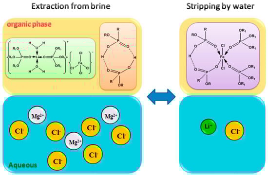 - Li, Z.; Binnemans, K. Opposite selectivities of tri-n-butyl phosphate and Cyanex 923 in solvent extraction of lithium and magnesium. AIChE J. 2021, 67, e17219. [Google Scholar] [CrossRef]