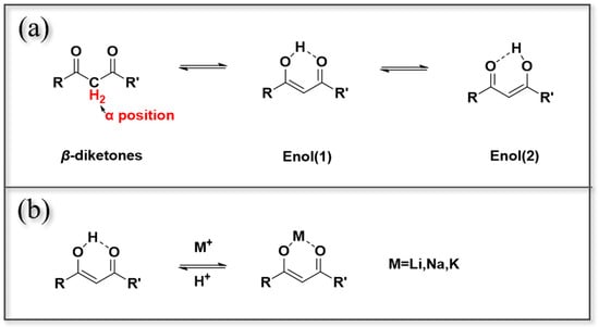 (a) Chemical structures of alcohol–ketone extractants ketone and enol; (b) mechanism of interaction between alcohol–ketone extractants and alkali metal ions.