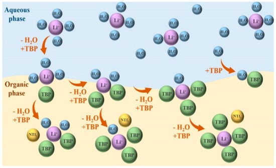 The schematic diagram of the lithium-ion extraction mechanism of the TBP–[Bmim] [Nf2T] mixed system. Reprinted from ref. [].