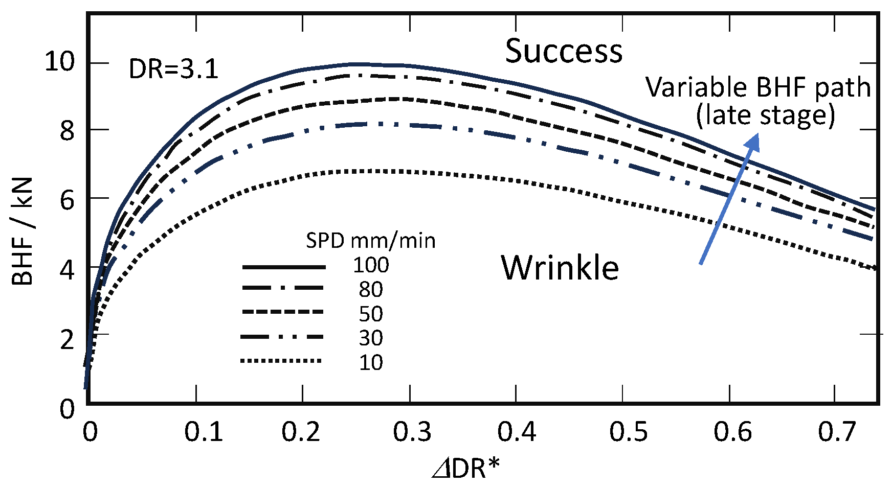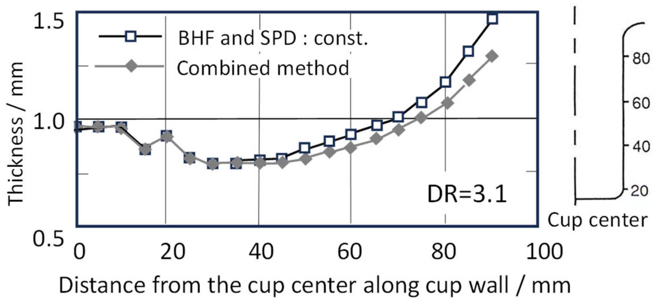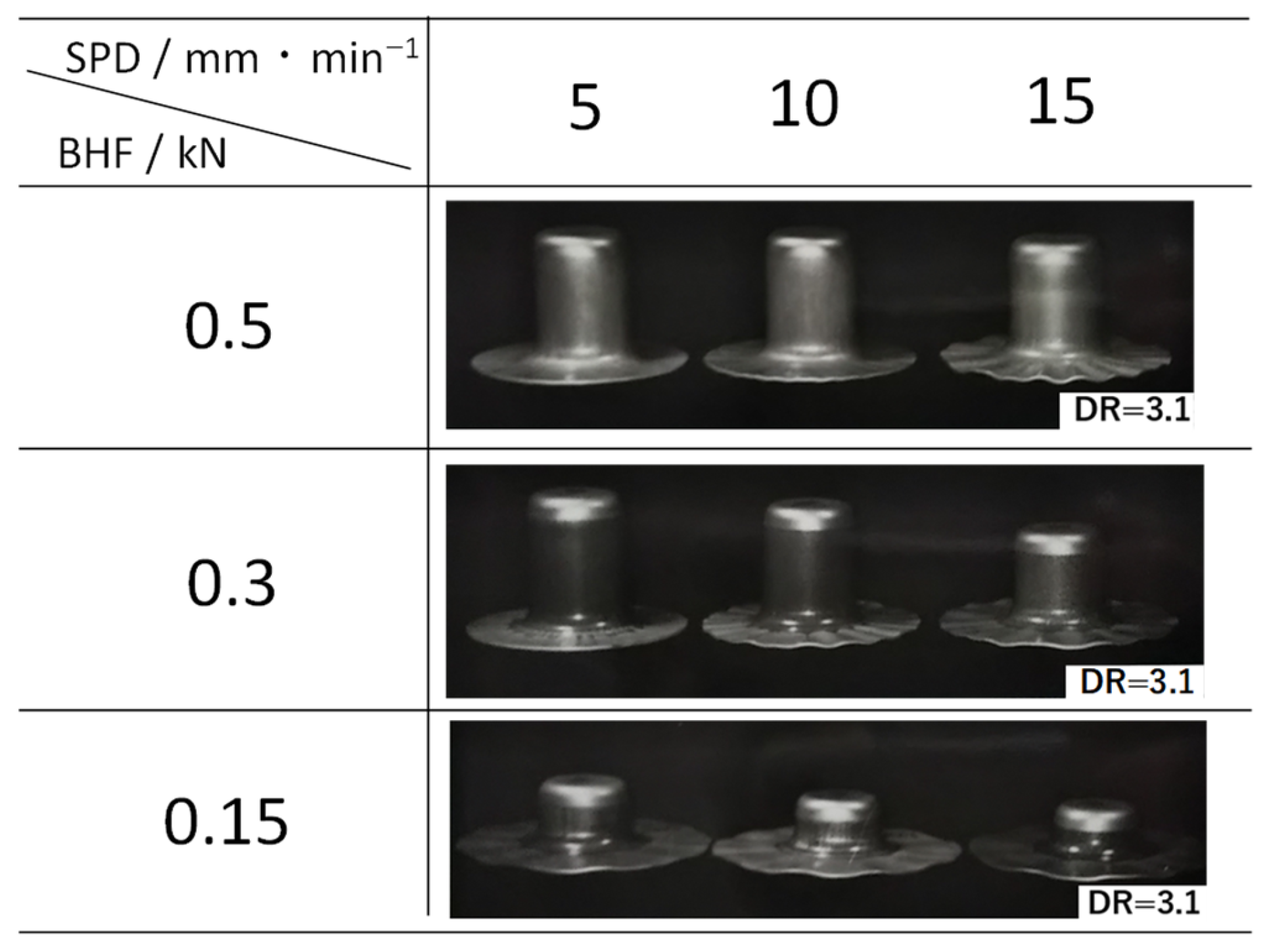 | Constant SPD/BHF method (SPD = 15 mm/min, BHF = 1 kN) | 320 |