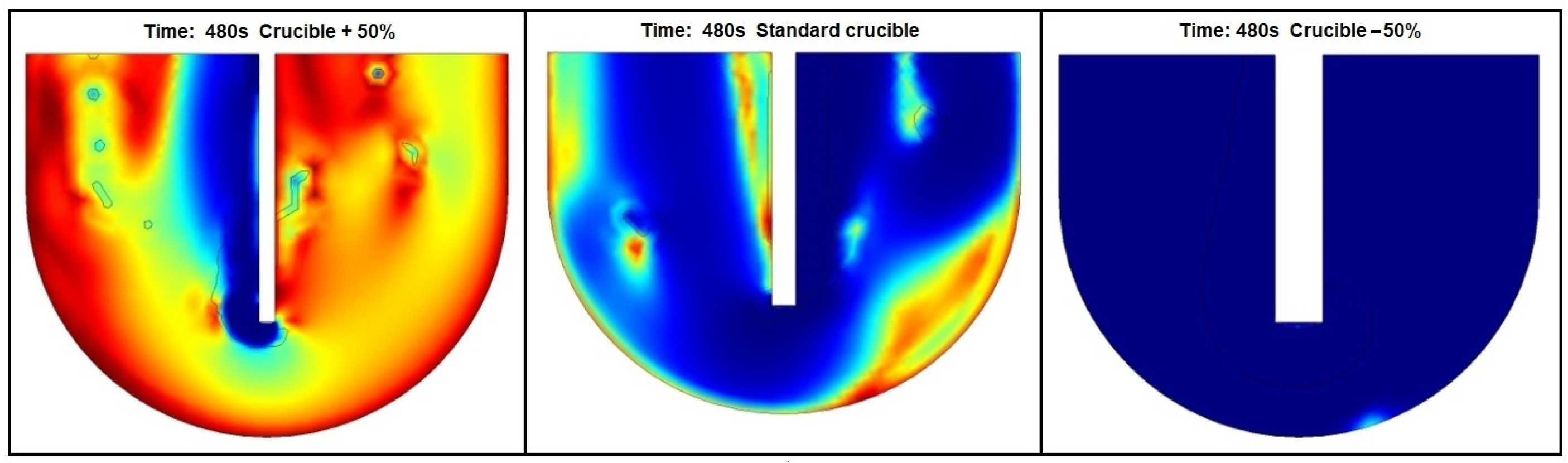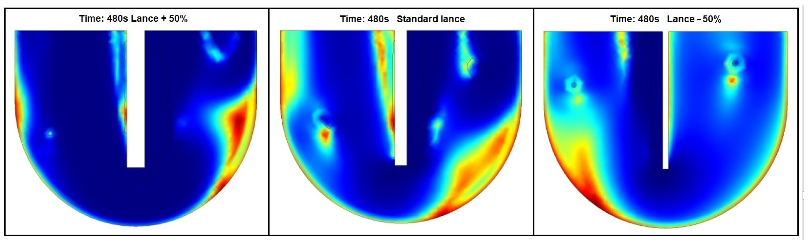 | Velocity (m/s) | Lance Height (70%) | Crucible Size (+50%) | Crucible Size (50%) | Lance Size (+50%) | Lance Size (50%) | Lance Height (30%) | Lance Height (50%) | Lance Height (90%) |