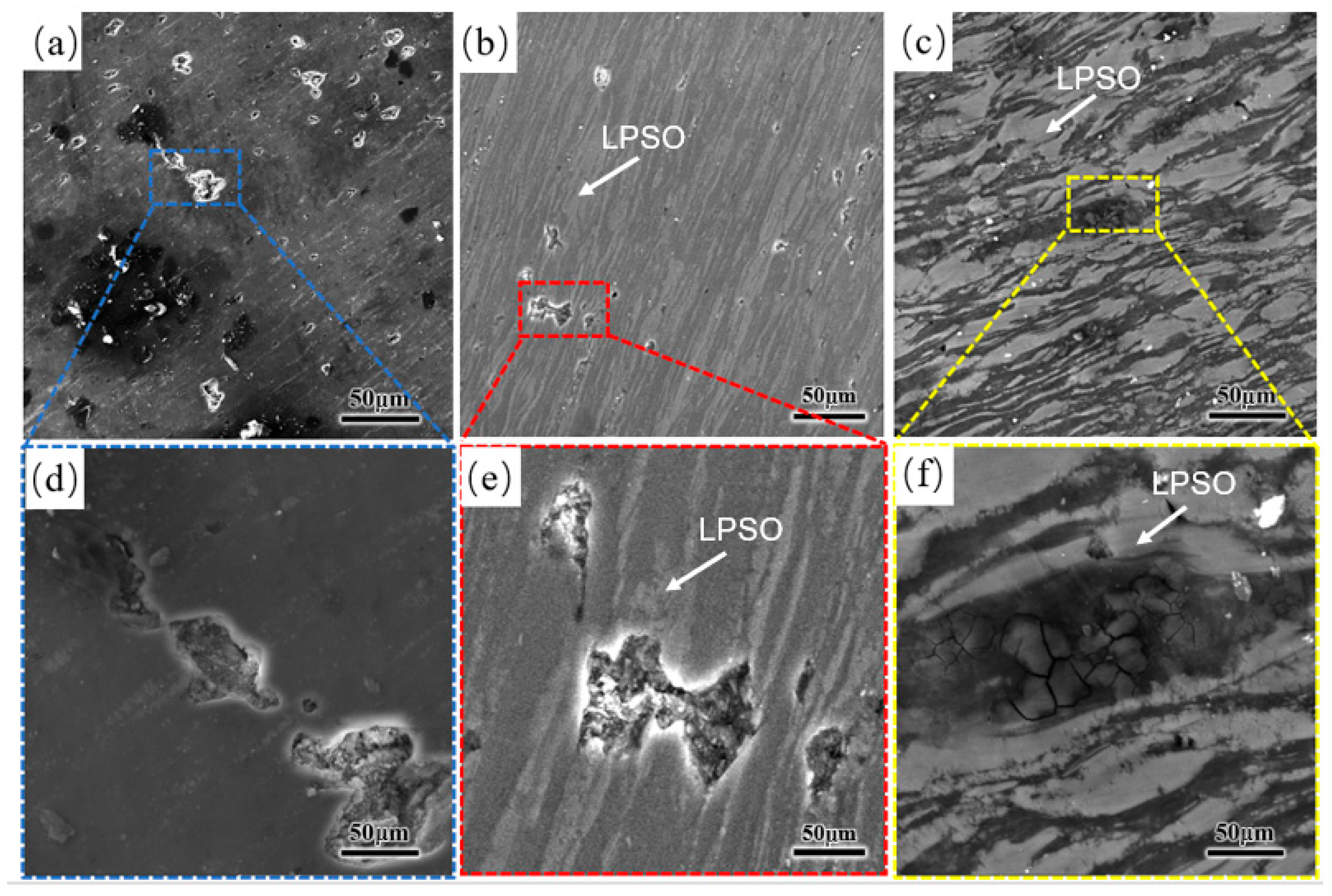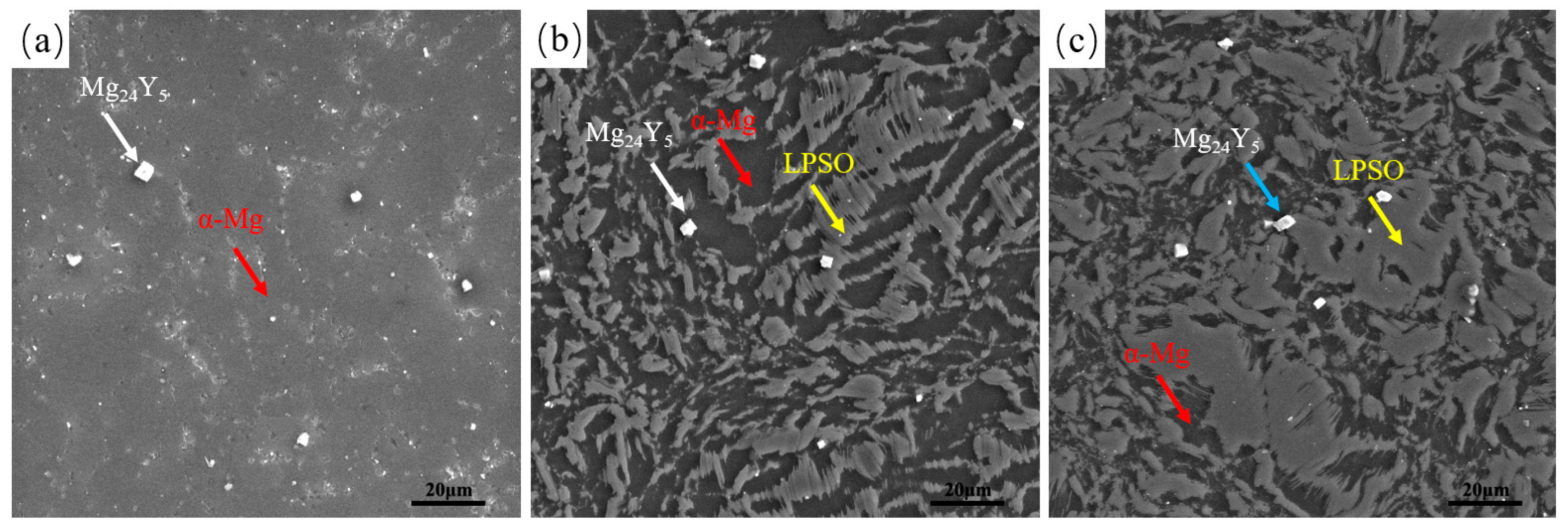 - At elevated temperatures, due to the excellent thermal stability of the 18R-LPSO phase, the large volume fraction of blocky 18R-LPSO effectively prevents crack propagation at elevated temperature, thereby improving the elevated-temperature performance of the alloy.