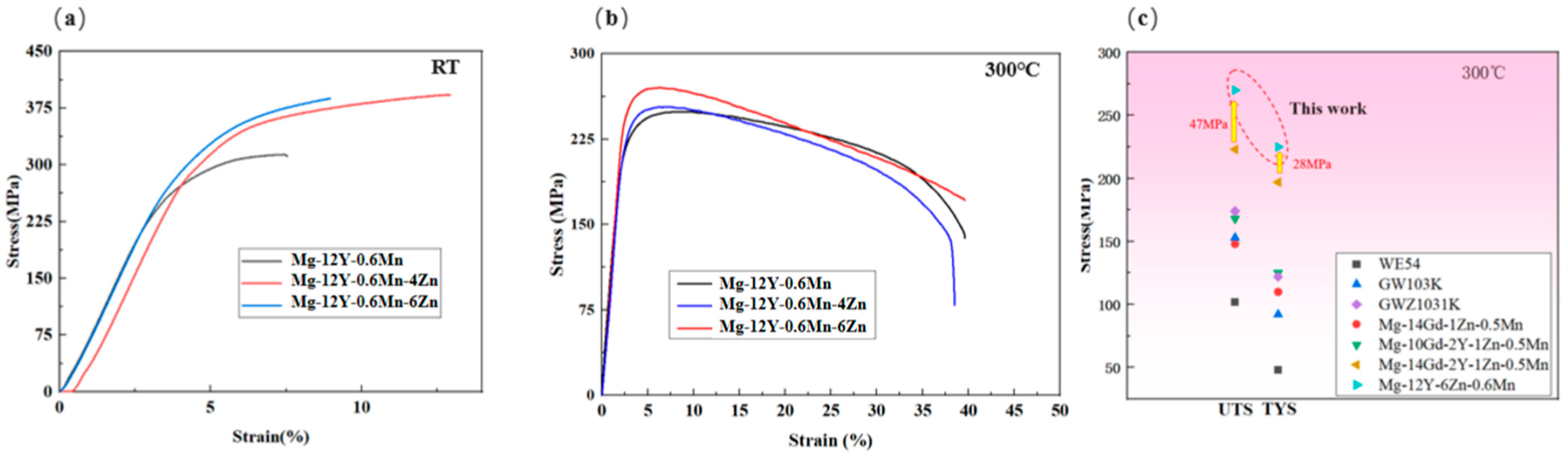 - Hu, J.; Wu, J.; Liu, X.; Zhao, D.; Liang, L.; Peng, J. Influence of Y/Zn Ratio on Secondary Phase Strengthening of Mg-Y-Zn Alloy. Metals 2025, 15, 359. [Google Scholar] [CrossRef]