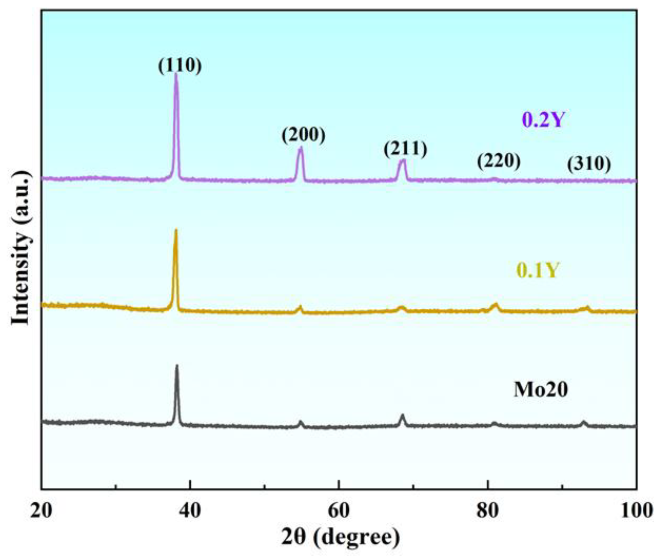 3.2. The Microstructure and Properties of Mo20 (0.1Y/0.2Y)