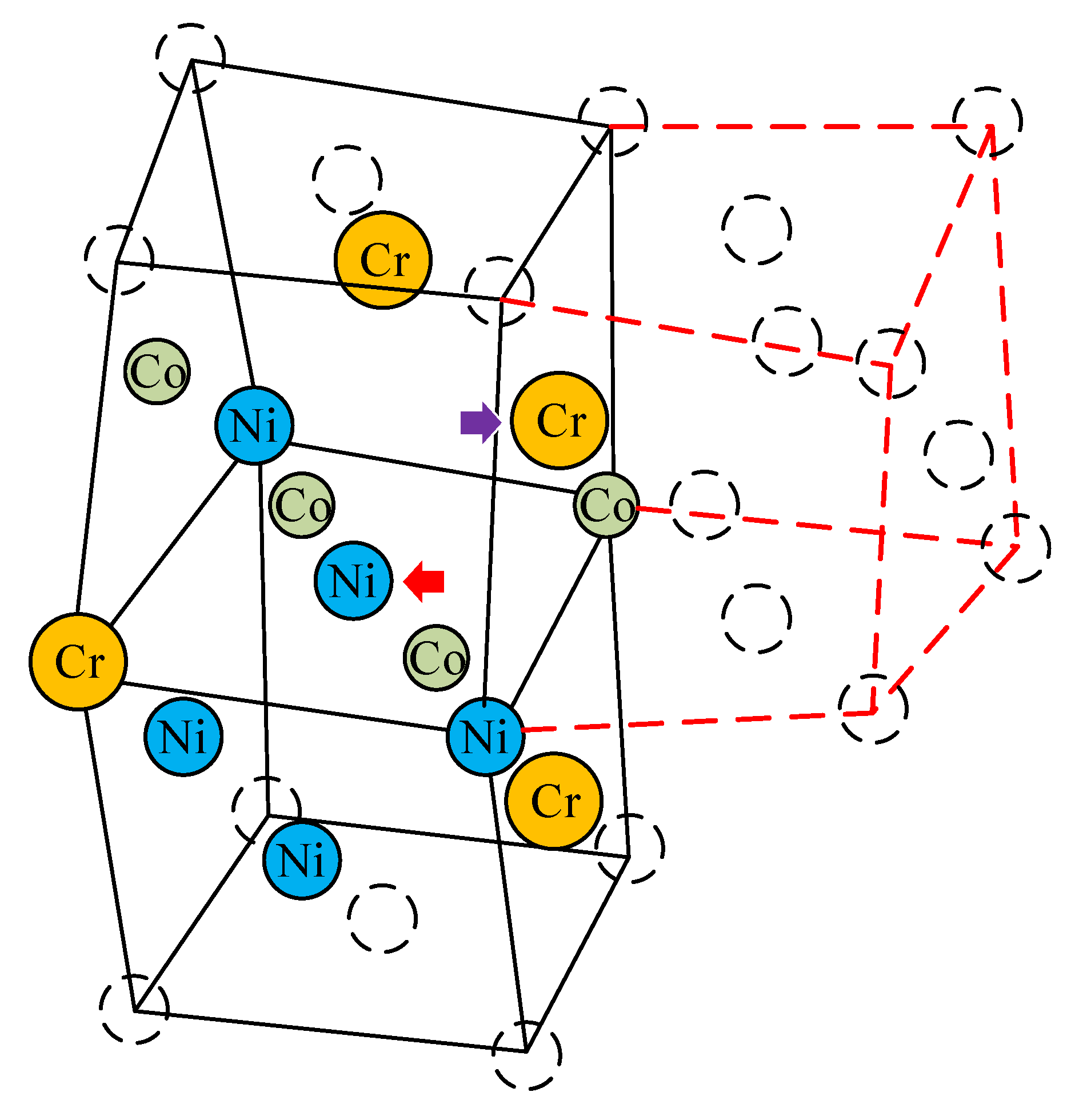 - Liu, S.F.; Wu, Y.; Wang, H.T.; He, J.Y.; Liu, J.B.; Chen, C.X.; Liu, X.J.; Wang, H.; Lu, Z.P. Stacking fault energy of face-centered-cubic high entropy alloys. Intermetallics 2018, 93, 269–273. [Google Scholar] [CrossRef]