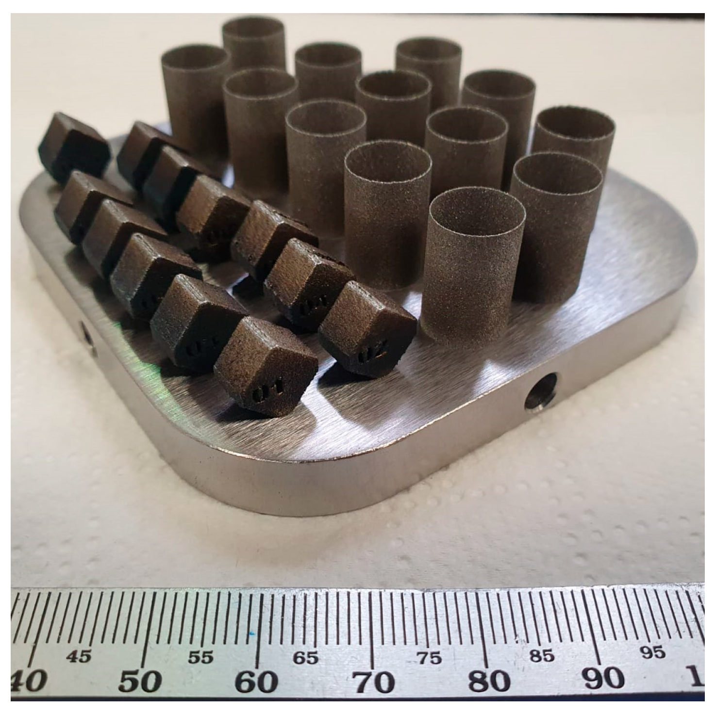 | Block Path Hatch Laser Power (W) | Block Path Point Distance (µm) | Block Path Scanning Speed (m/s) | LED (J/mm3) | |||