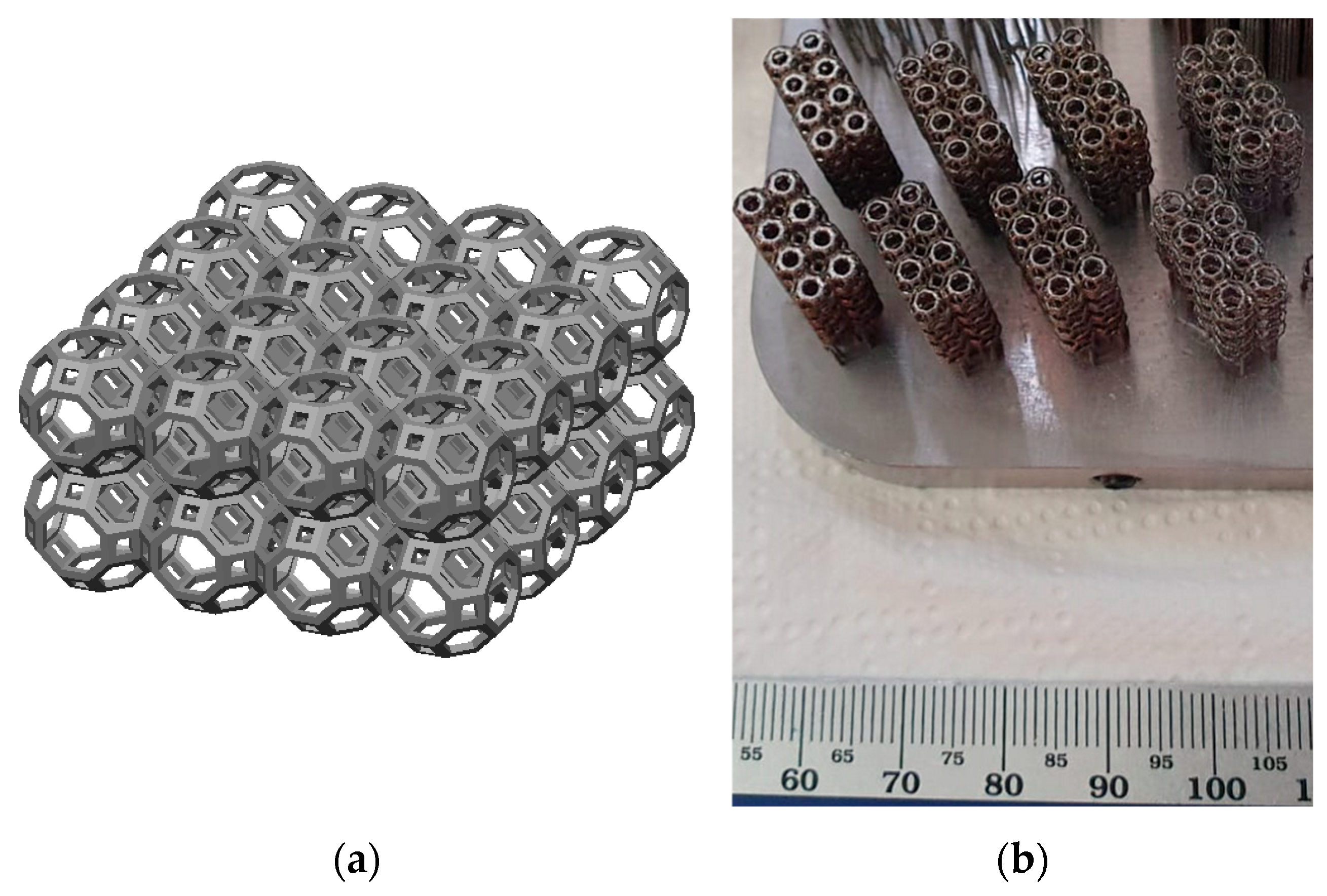 - Chen, L.-Y.; Liang, S.-X.; Liu, Y.; Zhang, L.C. Additive manufacturing of metallic lattice structures: Unconstrained design, accurate fabrication, fascinated performances, and challenges. Mater. Sci. Eng. R Rep. 2021, 146, 100648. [Google Scholar] [CrossRef]