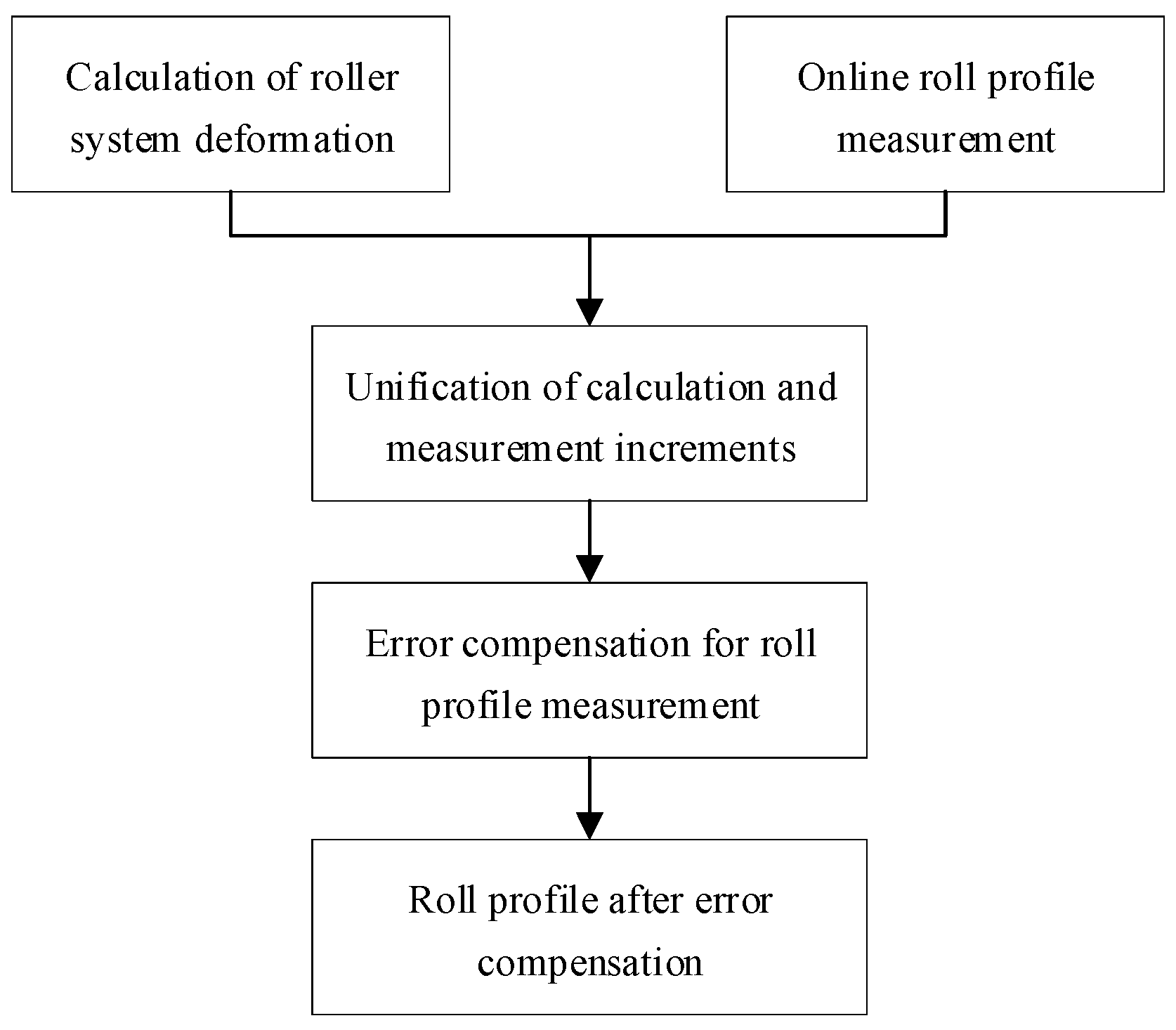 Xing, J.; Peng, Y. Theoretical Study on Error Compensation for Online Roll Profile Measurement Considering Roller System Deformation. Metals 2025, 15, 1358. https://doi.org/10.3390/met15121358