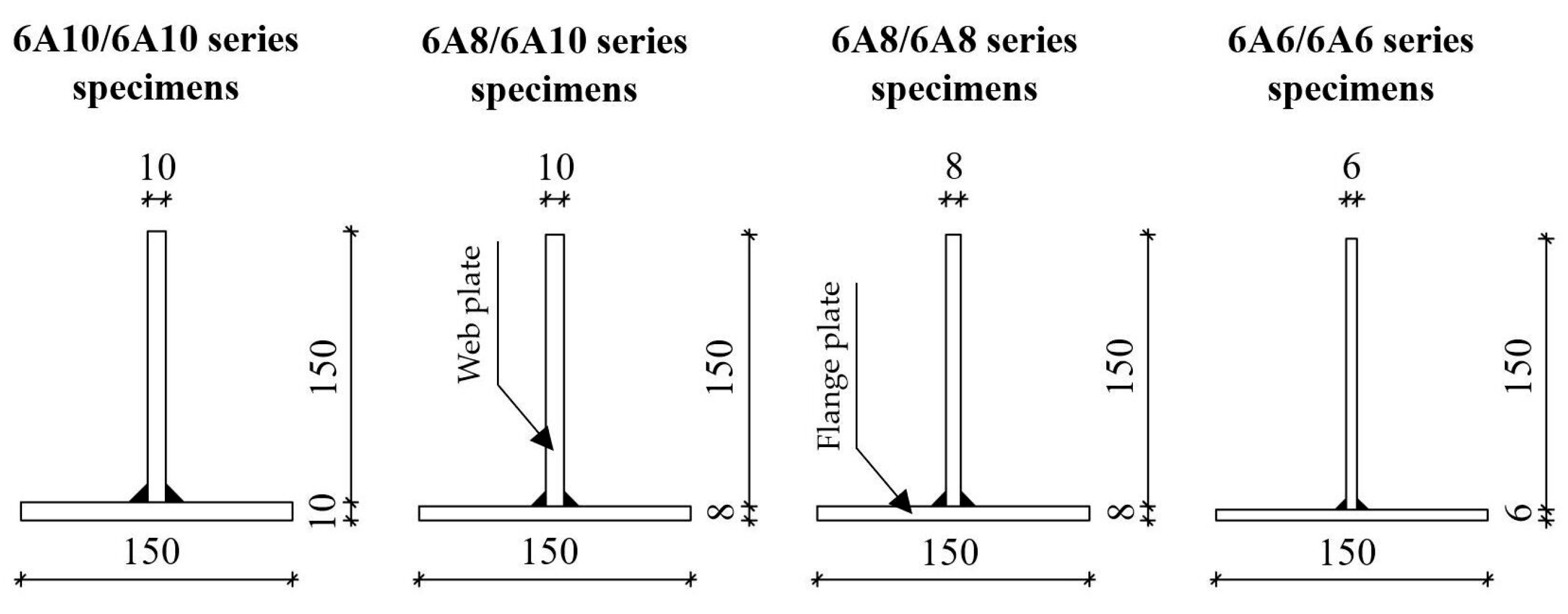 | Specimen | Welding Process Type | Flange Plate Thickness [mm] | Web Plate Thickness [mm] |