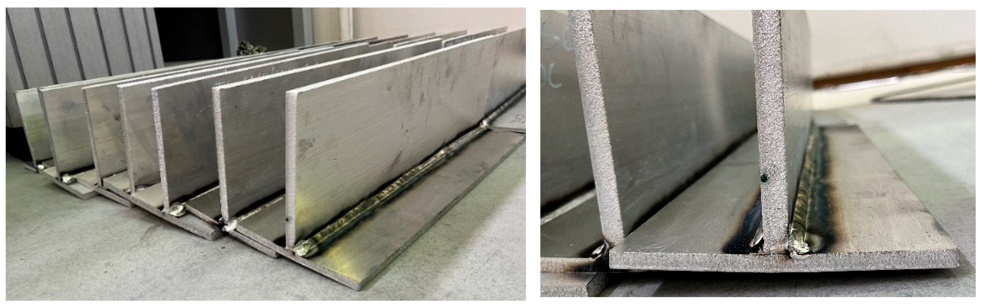 - ISO 5817:2023; Welding—Fusion-Welded Joints in Steel, Nickel, Titanium and Their Alloys (Beam Welding Excluded)—Quality Levels for Imperfections. European Committee for Standardization (CEN): Brussels, Belgium, 2023.