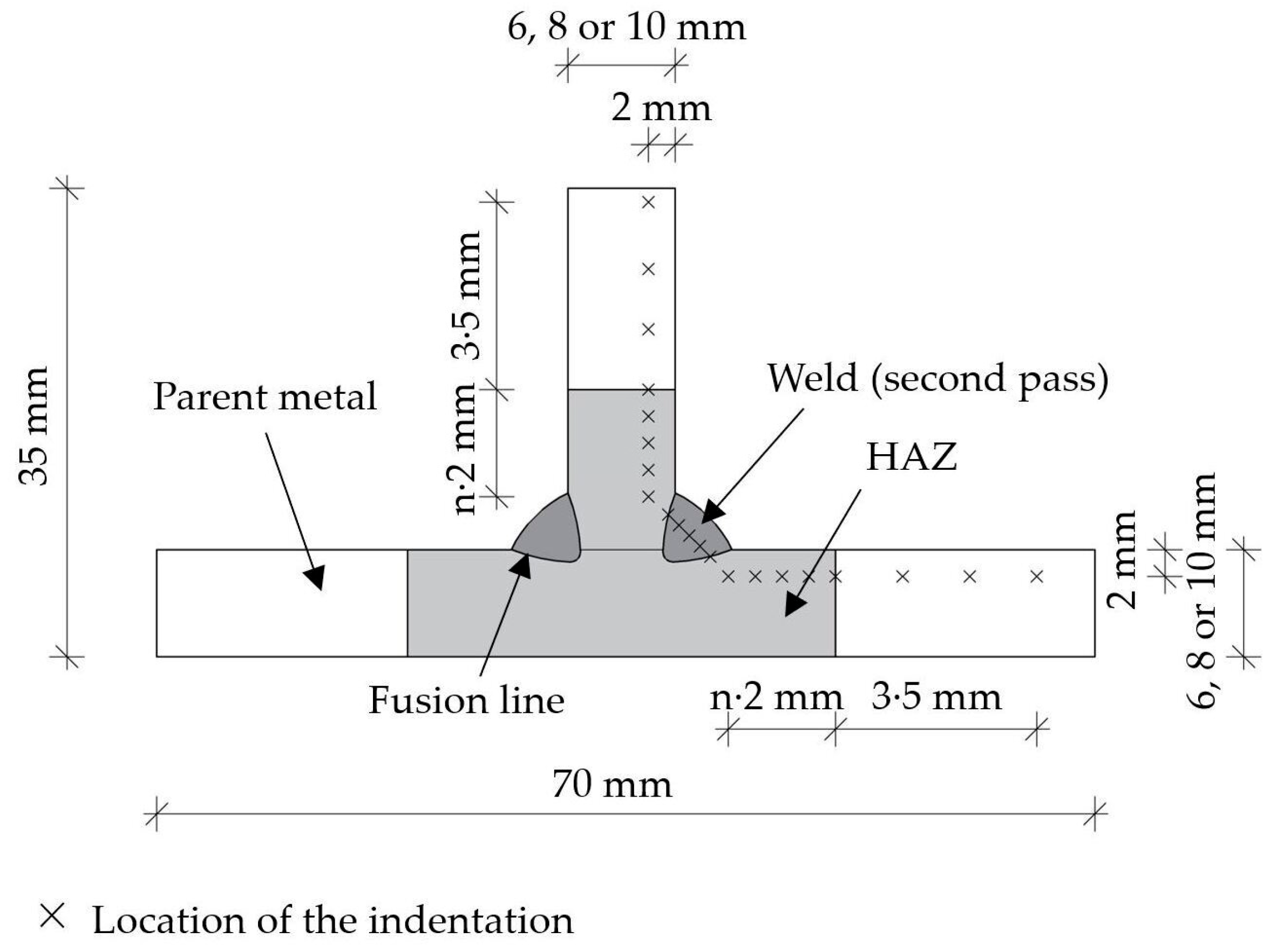 - EN ISO 9015-1: 2011; Destructive Tests on Welds in Metallic Materials—Hardness Testing—Part 1: Hardness Test on Arc Welded Joints. European Committee for Standardization (CEN): Brussels, Belgium, 2011.
