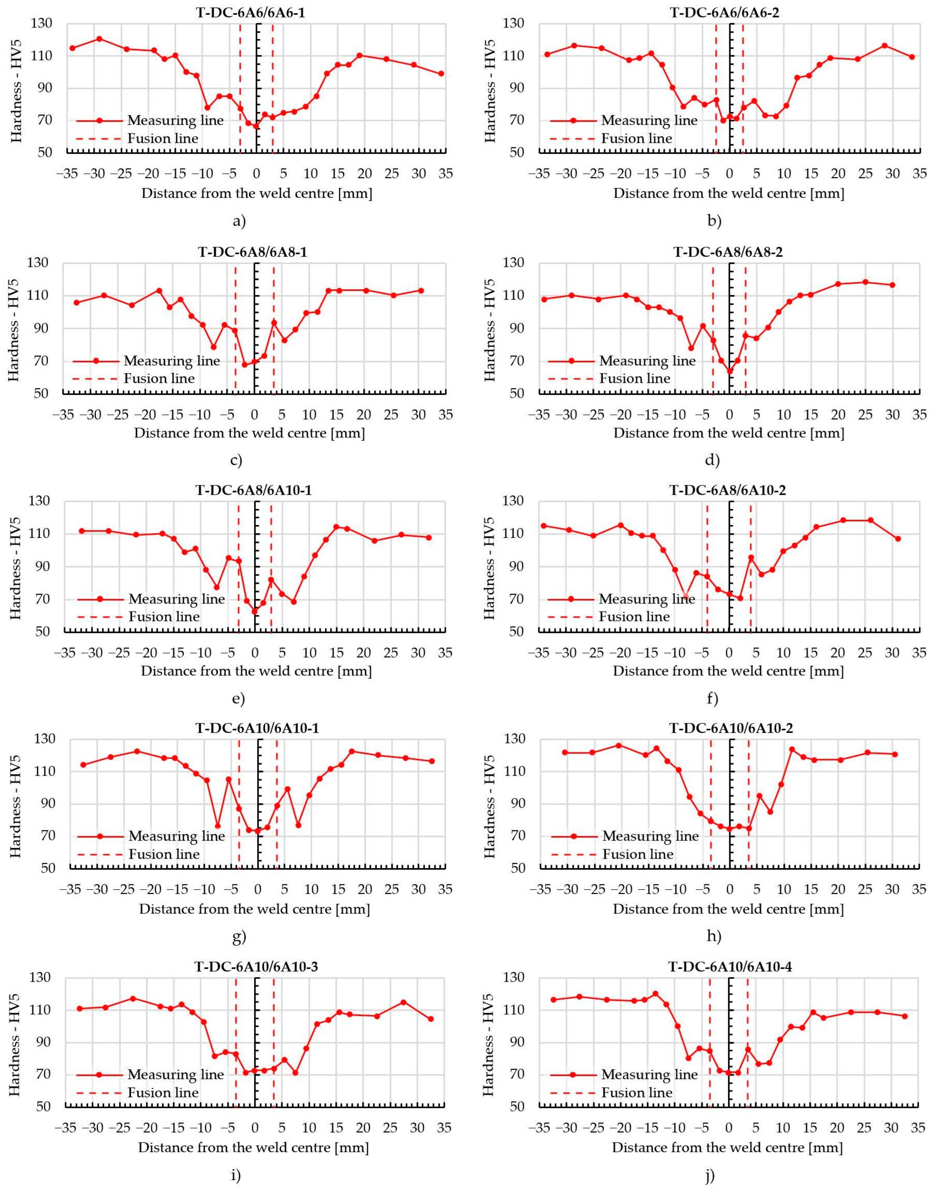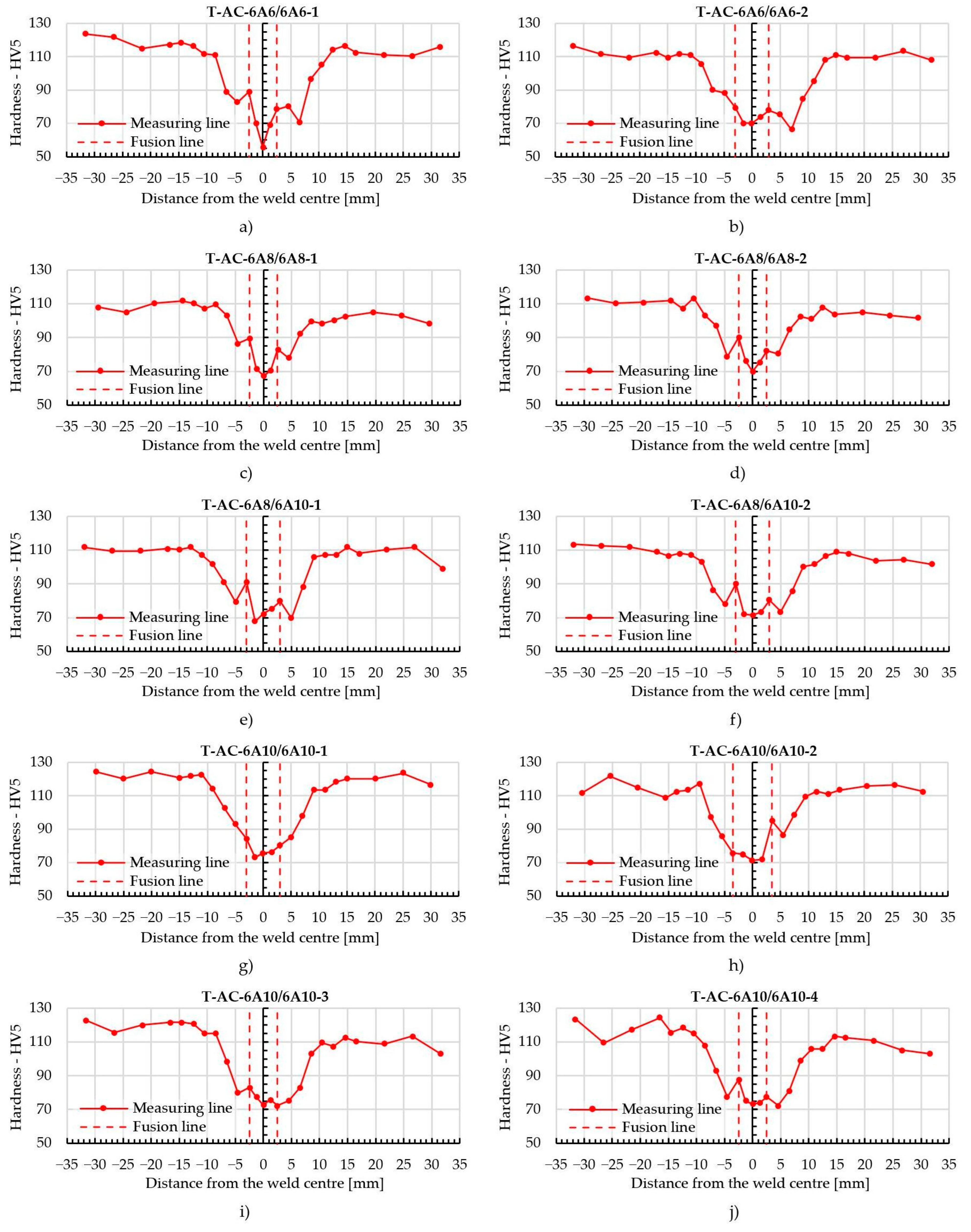 - Lundberg, S.; Tjøstheim, N.J. Hydro Report RDK-14-002-01: Mechanical Properties in the Heat-Affected Zone of Welded EN AW-6082 T6; European Commission: Brussels, Belgium, 2014; p. 23. [Google Scholar]
