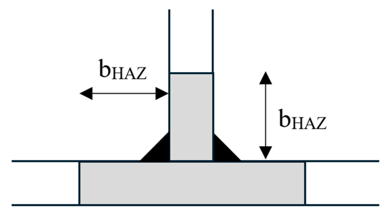 | T-Connection Specimen | HAZ Extent Measured According to EC9 [33] Approach, [mm] | |||||