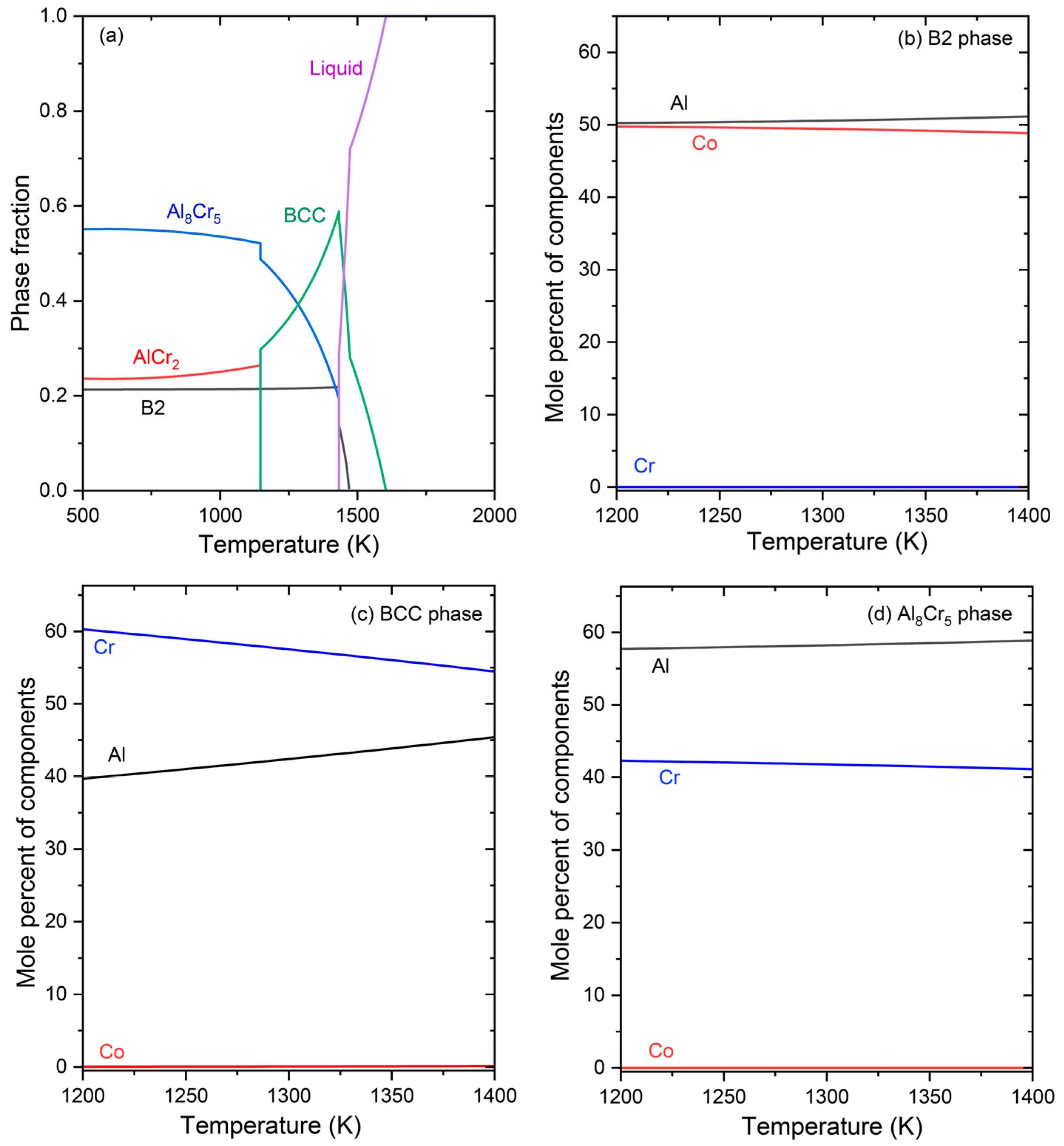 | As-cast | Bright: B2 | Al51.2±2.1Cr20.2±1.2Co28.6±1.4 | 54 |