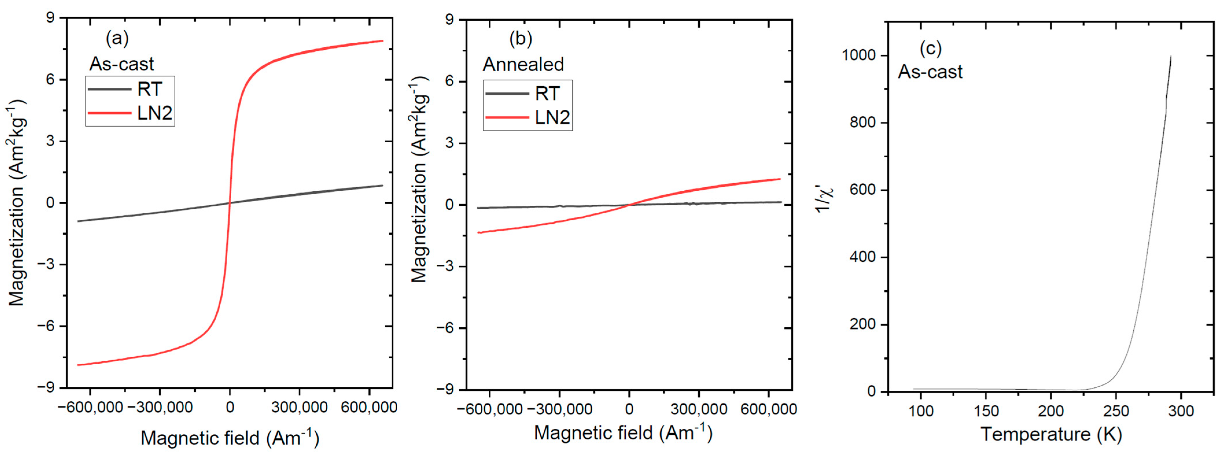 3.3. Magnetic Analysis of the Al50Cr38Co12 Alloys