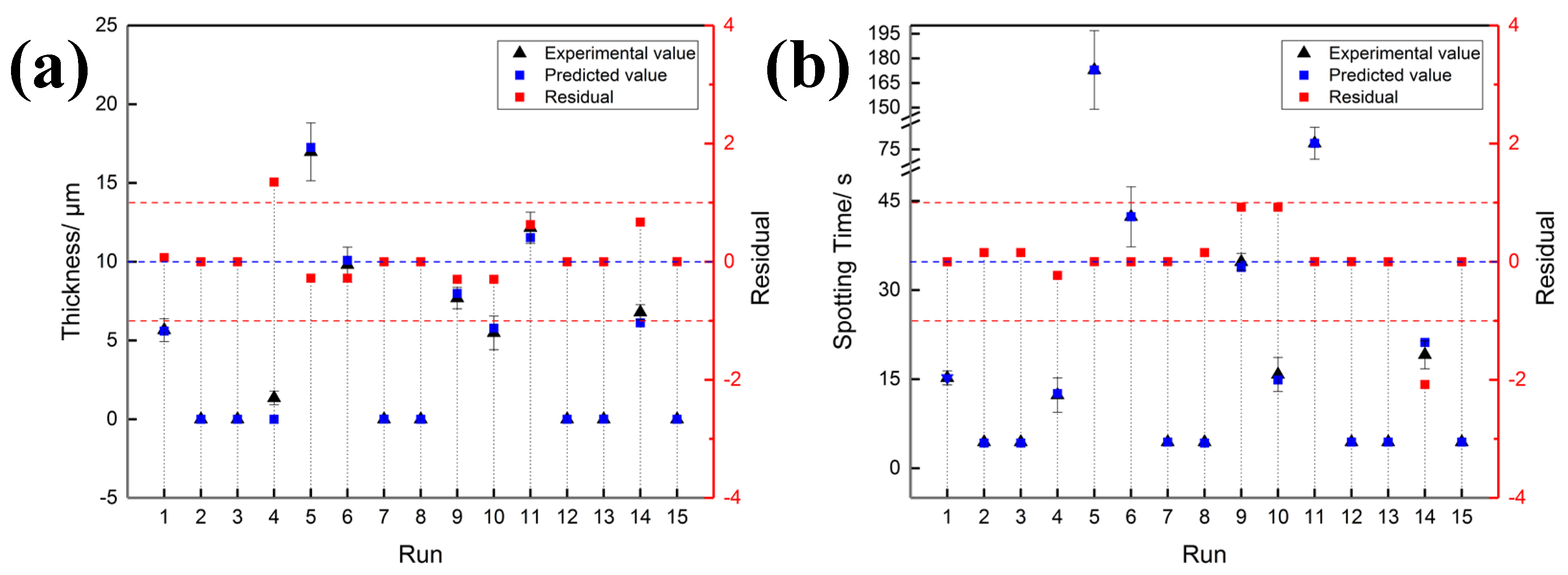 - Based on regression analysis, the electrolytes are linked to the final coating performances, and the regression models between the electrolyte components and the thickness and corrosion resistance are fitted. The equations are all very significant (p-value < 0.01), and have high prediction accuracy (R2 = 0.9893, 0.9989), which can be used for the optimization of the electrolyte formula and the prediction of the coating performance.
