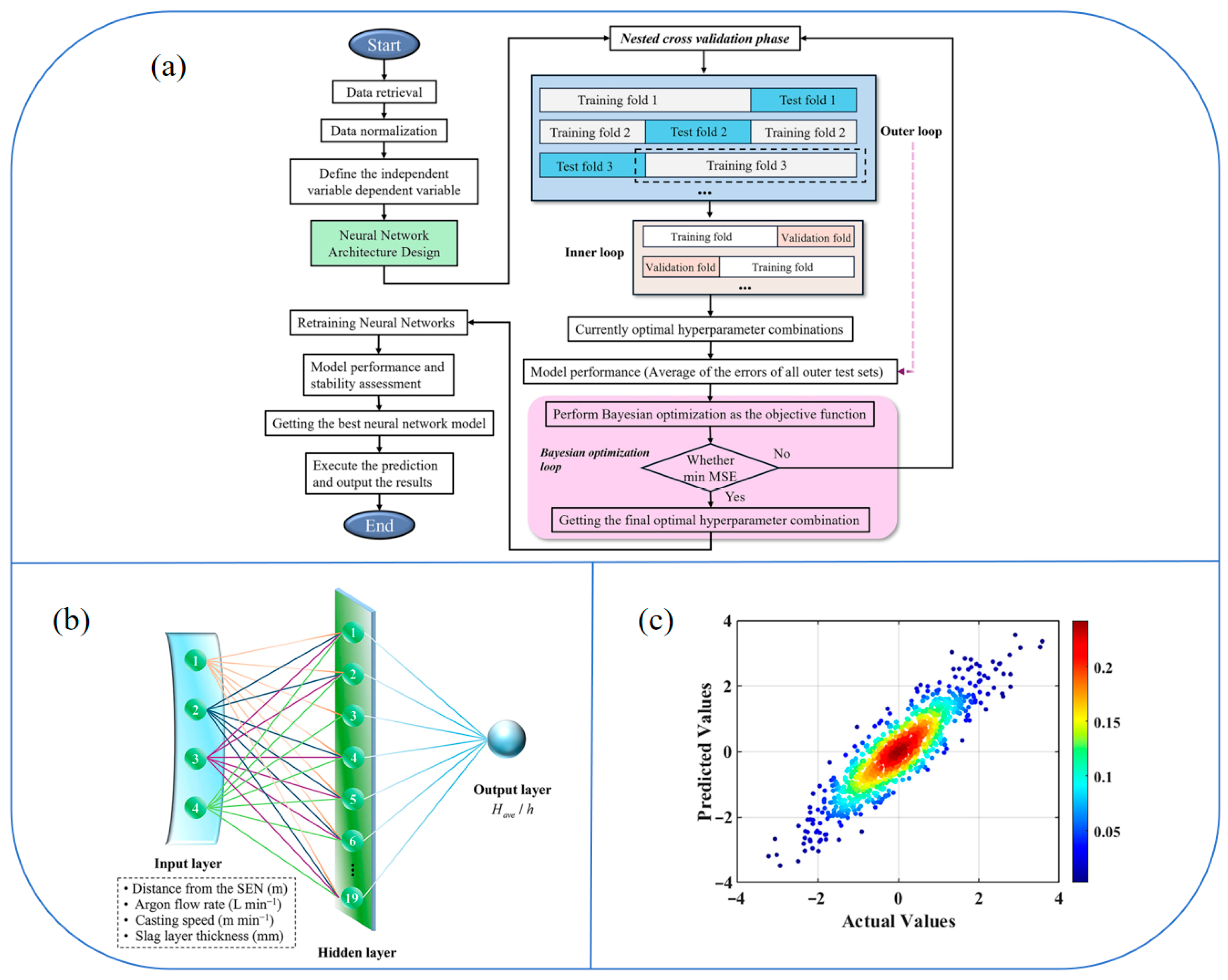 | Diniz | DNN | Nozzle clogging | Molten steel chemical composition data (Al, Si, Ca, Mn, S, etc.) and stopper rod position data | RMSE | Realizes binary classification detection directly through process parameters without metallurgical prior knowledge | [44] |