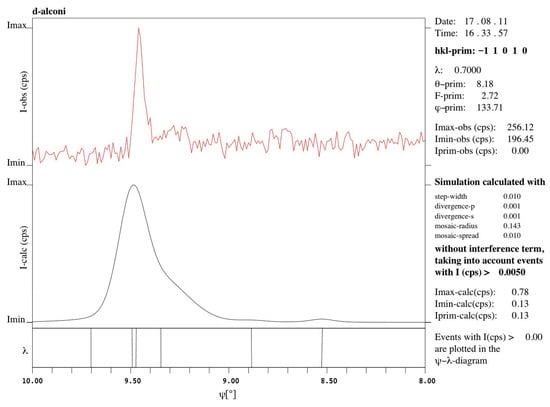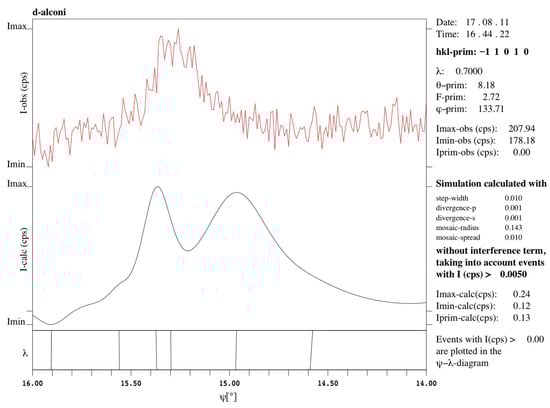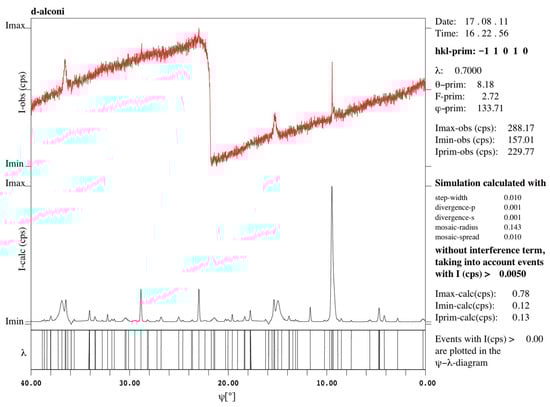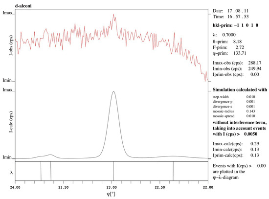 - Rossmanith, E. Kinematical multiple diffraction: The width of ψ-scan intensity profiles. Acta. Cryst. A 2007, 63, 251–256. [Google Scholar] [CrossRef]