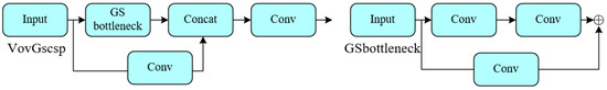 GSConv is applied in the neck network to reduce information loss during channel conversion and reduce the amount of computation; the VoVGscsp module was introduced to achieve cross-layer network structure aggregation, integrating feature information between different network levels and improving the network’s feature perception and fusion ability.