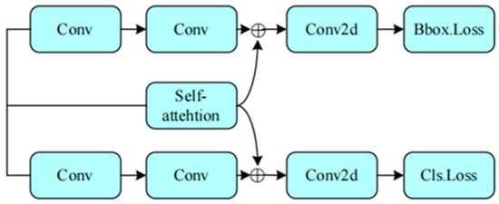 The SA (self-attention) mechanism is applied in the decoupled head detection network structure (Figure 8). Two branch structures are fused through convolution feature information and SA feature information which improve the model’s perception of details and better recognize detailed targets in images. It ensures that detailed features are fully captured.