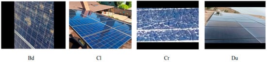 To verify the application capability of the YOLOV8-MGVS model in other industrial scenarios, the Solar pane defect detections (SDD DET) dataset was selected for validation. It contains four types of surface defect categories, namely Bird Drop (Bd), Clean (Cl), Cracked (Cr), and Dust (Du), with a total of 5153 images, as shown in Figure 15. The dataset is divided into training, testing, and validation sets in a ratio of 7:2:1.