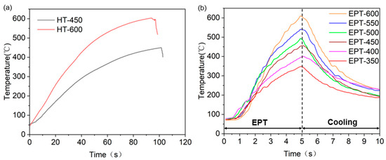 Temperature curves of HT and EPT: (a) HT temperature curve and (b) EPT temperature curve.