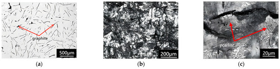- Collini, L.; Nicoletto, G.; Konečná, R. Microstructure and mechanical properties of pearlitic gray cast iron. Mater. Sci. Eng. A 2008, 488, 529–539. [Google Scholar] [CrossRef]