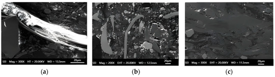 Microstructure of brake pads matched with the brake drum for wear experiments. (a) Semi-metallic brake pad; (b) NAO brake pad; (c) ceramic brake pad.