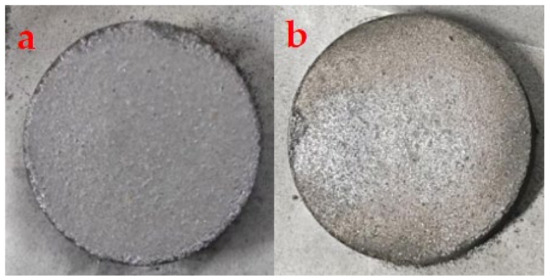 Residues of 1423 K (a) and 1473 K (b) insulated for 1 h.