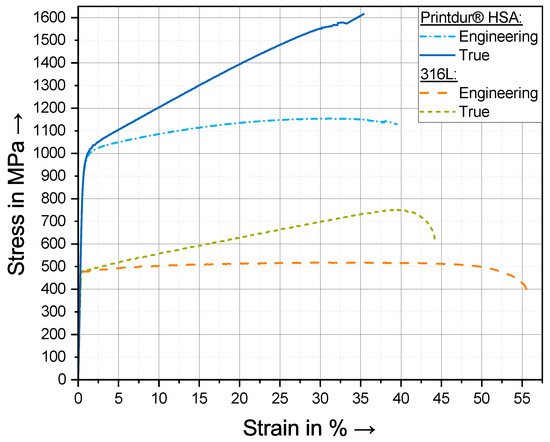 - Printdur® HSA demonstrates exceptional mechanical properties, with an average yield strength (Rp0.2) of 927.0 MPa, an ultimate tensile strength (Rm) of 1153.3 MPa, and an elongation at fracture of 38.1%, classifying it as a high-strength, high-ductility austenitic stainless steel.