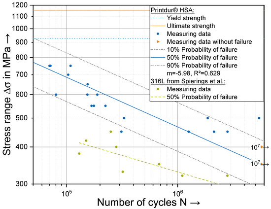 - Printdur® HSA exhibits significantly enhanced fatigue resistance, enduring 25 times the number of cycles as PBF-LB/M/316L under a stress range of 400 MPa.