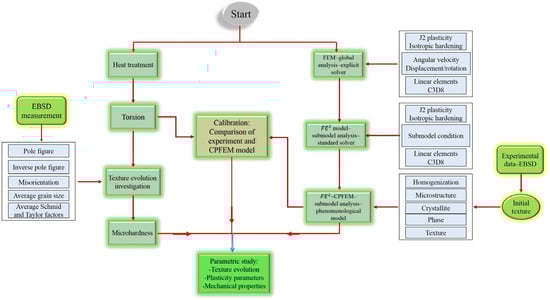 The flow chart of the multiscale CPFEM simulation and experimentally microstructure evolution in this study is shown in Figure 4.