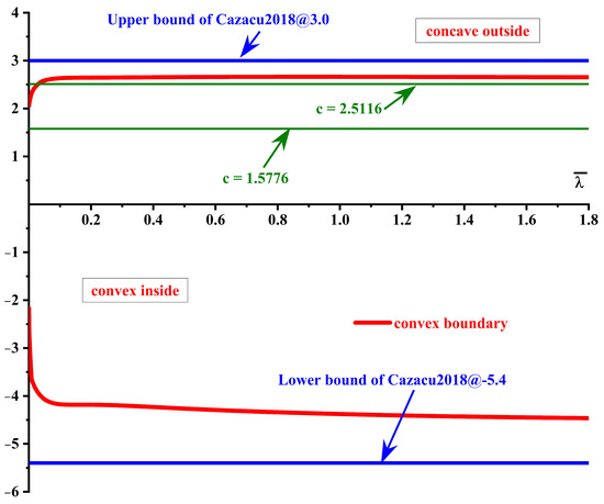 In the Chen-CQN yield model, the associated plastic strain significantly influences the anisotropic properties of the material, whereas parameter c governs the curvature of the yield locus. Thus, both c and define the convexity of the yield surface in the model. In this study, the newly proposed geometry-inspired numerical convex analysis (GINCA) approach is used to examine the convexity of the yield surface. The GINCA approach has been developed to evaluate the convexity of yield functions. The GINCA approach focuses on the effective stress derived from the yield function, eliminating the need to calculate first- and second-order partial derivatives. The effectiveness of the GINCA method has been verified by applying it to various well-established yield functions, including those proposed by Cazacu–Barlat (2004), Cazacu (2018), and Drucker and Hu (2017). In addition, it has been used to determine the convexity of the yield function of Gao (2011), which had not been previously defined. The GINCA approach has also been used to analyze the evolution of convex domains concerning plastic deformation in anisotropic hardening functions and to investigate the convexity of polynomial yield functions relevant to strongly anisotropic metals [39]. As shown in Figure 7, the convex domain represented by the region between the two red solid lines is mapped by varying the parameters c and under circumstances of plane stress and equibiaxial loading. It is evident that the determines the critical value of c required to ensure the yield function adheres to the condition of external convexity.