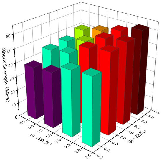 Histogram of the effect of elements Bi and In on shear strength.