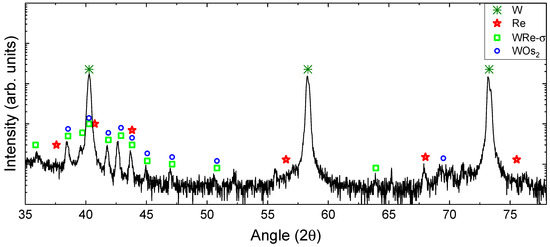 The crystalline structure was investigated by X-ray diffraction (XRD) measurements carried out at room temperature using a Bruker AXS (Karlsruhe, Germany) D8 diffractometer equipped with a Cu Kα X-ray source, a Göbbel mirror to produce a parallel beam, a scintillator detector, a soller collimator between the sample and the detector, and proper optical slits after the Göbbel mirror to define the angular resolution. A LaB6 660c NIST standard [81] was measured to determine the instrumental resolution near the (110) reflection of W (2θ = 40.26 degrees) and was found to be (0.090 ± 0.002) degrees. To increase the sensitivity to secondary phase detection, Grazing Incidence XRD (GIXRD) measurements were carried out at an incidence angle of 1.0 degree.