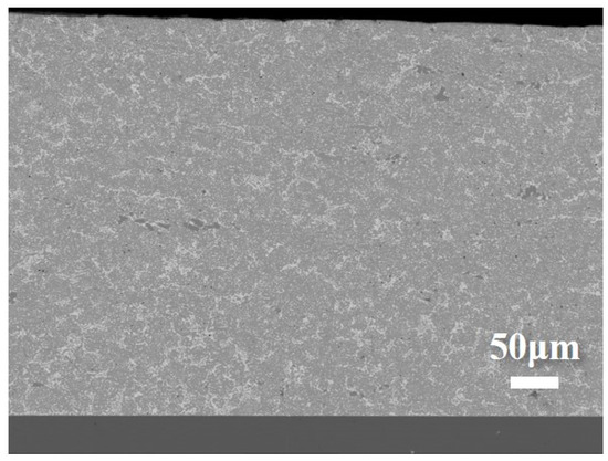 The prepared layered composite solder sheets were cut into small pieces measuring (5 ± 0.1) × (2 ± 0.1) mm and inlaid with epoxy conductive adhesive onto a conductive metal block. After grinding and polishing, the microstructure of the solder was observed using an electron probe microanalyzer (JXA-8530, JEOL, Tokyo, Japan). The interlayer bonding and elemental distribution of the solder with different numbers of layers were investigated using backscattered electron imaging (BSE) and line scan analysis.