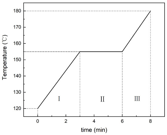The reflow process of the 7-layer composite solder sheet with Cu substrate was observed in situ using the SSRF. The reflow temperature profile is shown in Figure 6, and synchrotron radiation images at different stages of the reflow process are shown in Figure 7. In these images, the black color represents the Sn58Bi layer, the brighter gray color represents the SAC305 layer, and the lowest layer corresponds to the Cu substrate.