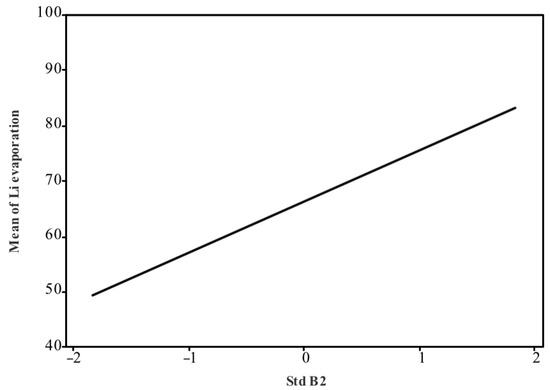 Full details of the model, including coefficients and statistical tests, can be found in File S2. The factorial plot derived from the model is presented in Figure 5, illustrating that B2, as a significant factor, has a positive impact on Li evaporation.