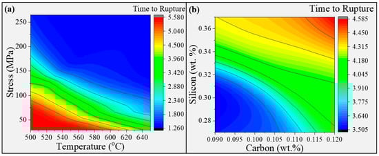 3.3. Prediction of the Combined Effect of Two Variables on Creep Rupture Life