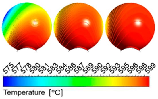 Figure 16 illustrates the uneven temperature distribution on the surface of the pellets. Since the kinetics of chemical reactions are significantly influenced by temperature, this uneven temperature distribution contributes to the lower reduction levels observed in the process.