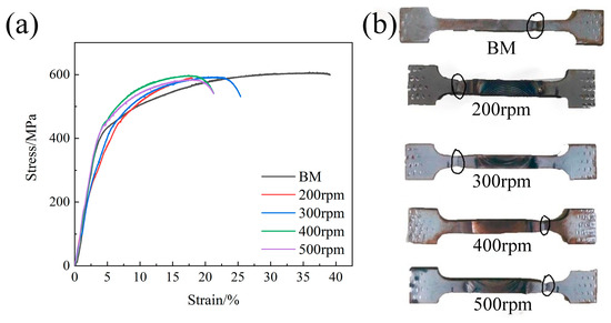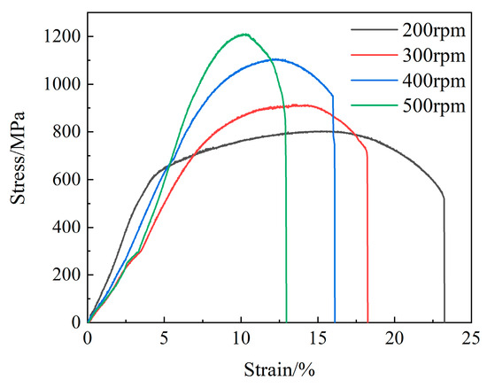 Tensile stress-strain curves of SZs at different rotation speeds.