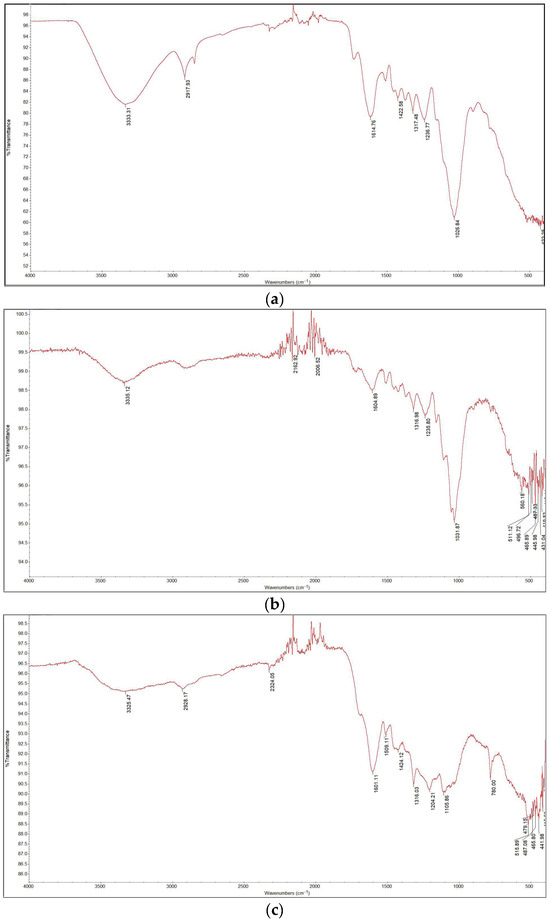 Infrared spectroscopy with Fourier transform (FTIR) was used to record the infrared absorption spectrum of a substance, and Fourier transform was used for data processing. The FTIR was determined using the NICOLET iS50 FT-IR apparatus (Omega, Ljubljana, Slovenia). The spectra of the samples were recorded using the classic ATR method, namely in the range from 400 cm–1 to 4000 cm–1.