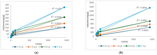 In our study, pseudo-first-order reaction and pseudo-second-order reaction were studied. Equation (4) shows pseudo-first-order reaction, while Equation (5) shows model’s pseudo-second-order reaction.